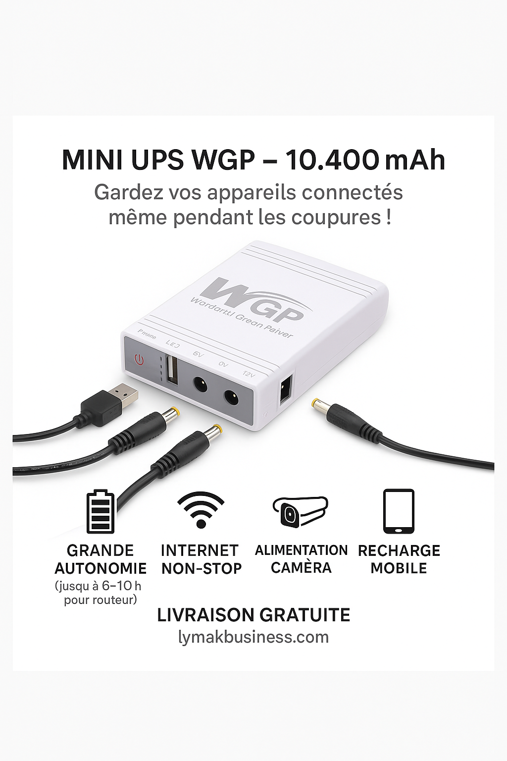 En somme, le Mini UPS WGP est la solution idéale pour rester connecté en toute circonstance, que ce soit à la maison, au bureau ou en déplacement.