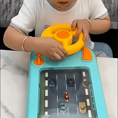 En tournant le volant et en appuyant sur les boutons, l’enfant développe sa motricité fine et ses réflexes.