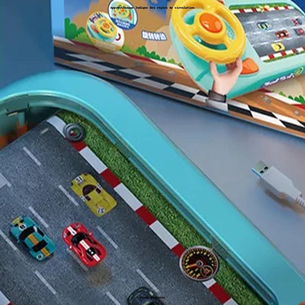 Grâce aux routes, voitures (police 🚓, ambulance 🚑, voiture de course 🏎️) et feux tricolores, il découvre les bases de la circulation.