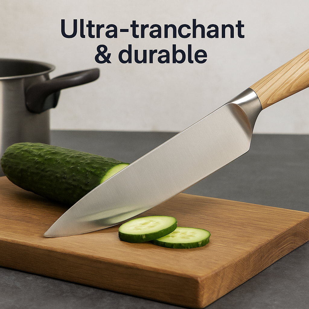 Oui, les couteaux sont en acier inoxydable de haute qualité, conçus pour rester ultra-tranchants dans le temps. Ils permettent des coupes nettes, que ce soit pour le pain, la viande, les légumes ou les fruits.