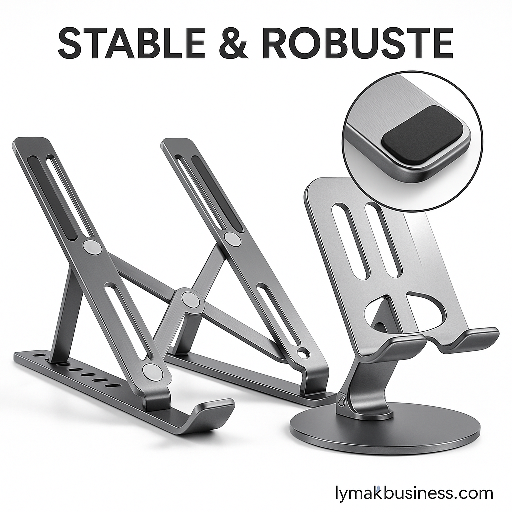 Supports solides et antidérapants, compatibles avec ordinateurs, tablettes et téléphones.